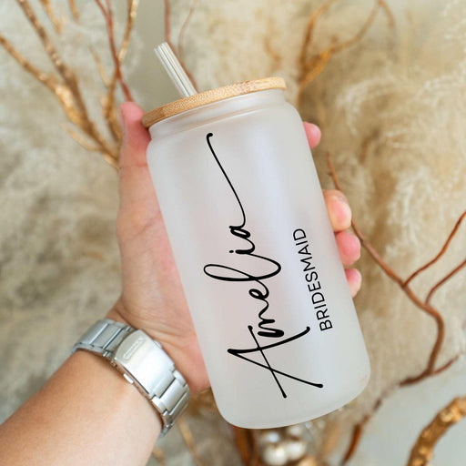 View full detailsBridesmaid Gift Customized Glass Tumbler 16oz Iced Coffee Tumbler Maid of Honor Gift Bachelorette Party Bridesmaid Proposal Wedding Gift
