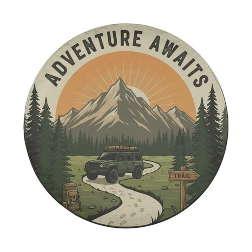 Bring your love for the outdoors wherever you go with our Adventure Awaits Spare Tire Cover. Designed for travel enthusiasts, hikers, and nature lo...