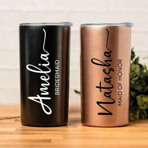 Personalized Name Skinny Mini Tumbler Custom Cup with Lid Bridesmaid Gift Bridal Shower Favor Wedding Party Gift for Bride Maid of Honor
