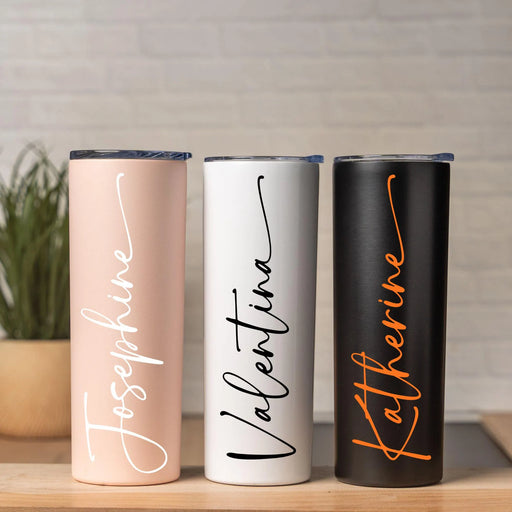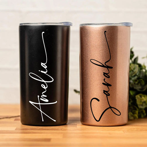 View full detailsPersonalized Name Printed Skinny Steel Tumbler Custom Metal Wine Cup Bridesmaid Gifts Bridal Shower Favors Rose Gold Bride Anniversary Gift