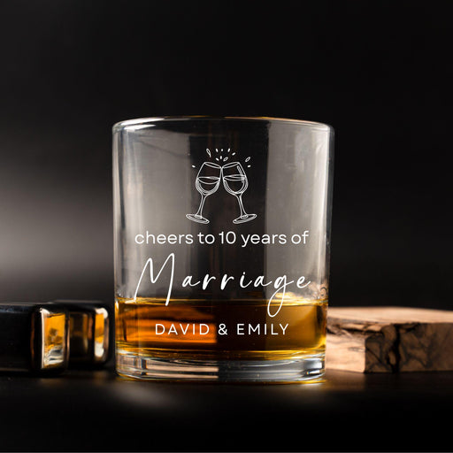 Personalized Whiskey Glass for Him Custom Engraved Barware Cheers to 10 Years Marriage Gift Unique Anniversary Present for Men
